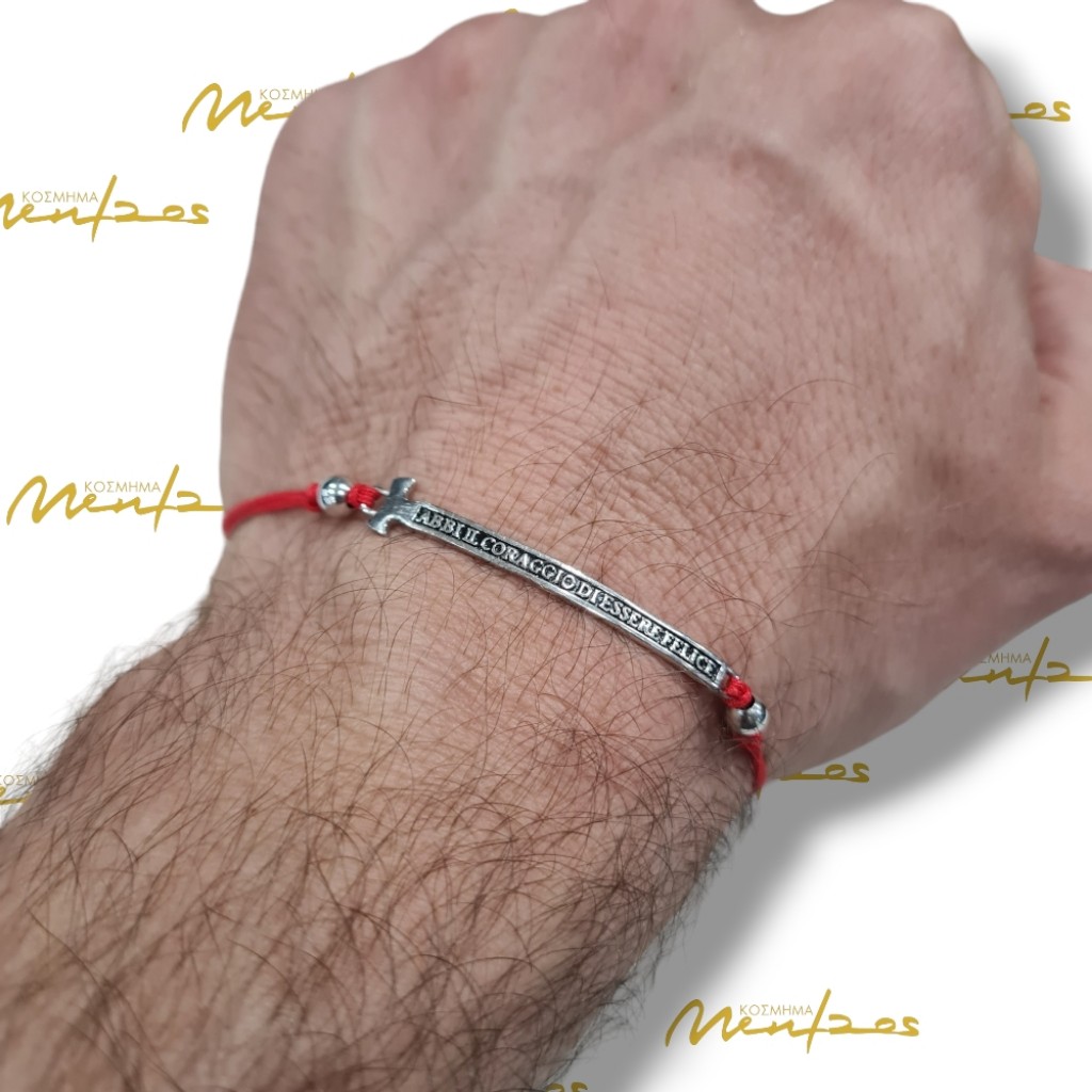 Nautical cotton rope bracelet with 925‰ silver element bearing the phrase "Have the courage to be happy" pronounced by Pope Francis on the occasion of World Youth Day in 2015