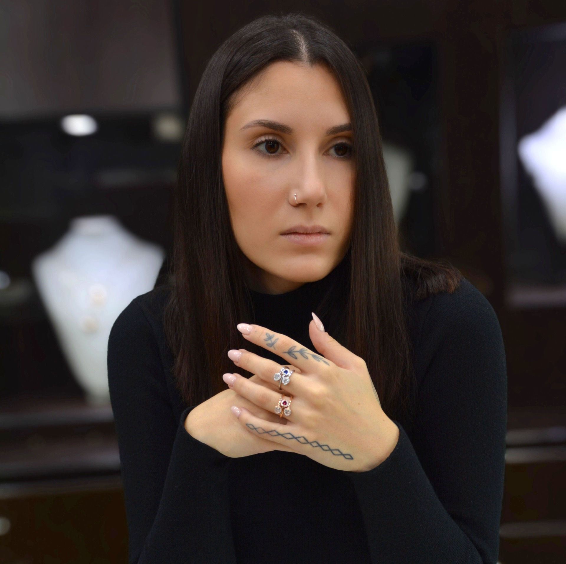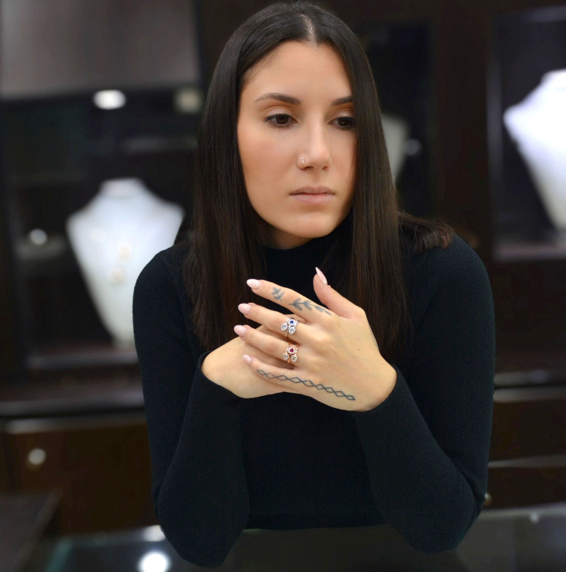Elegant silver ring adorned with three heart-shaped synthetic stones . A perfect piece to express love and passion with style.