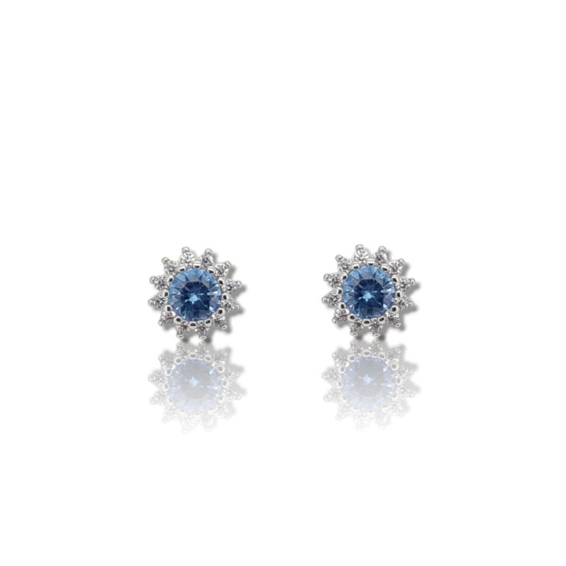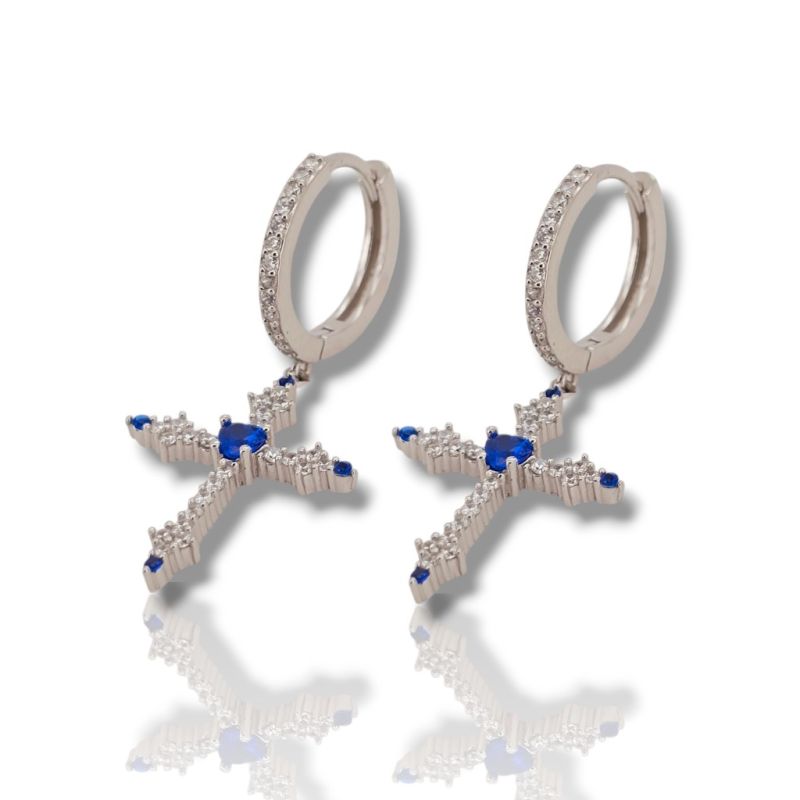Platinum plated silver 925º cross with white zircons and synthetic saphire