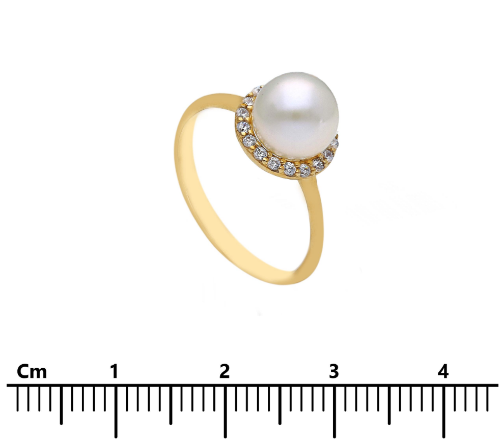 Golden ring k9 with pearl and zirgon stone (code S173616)