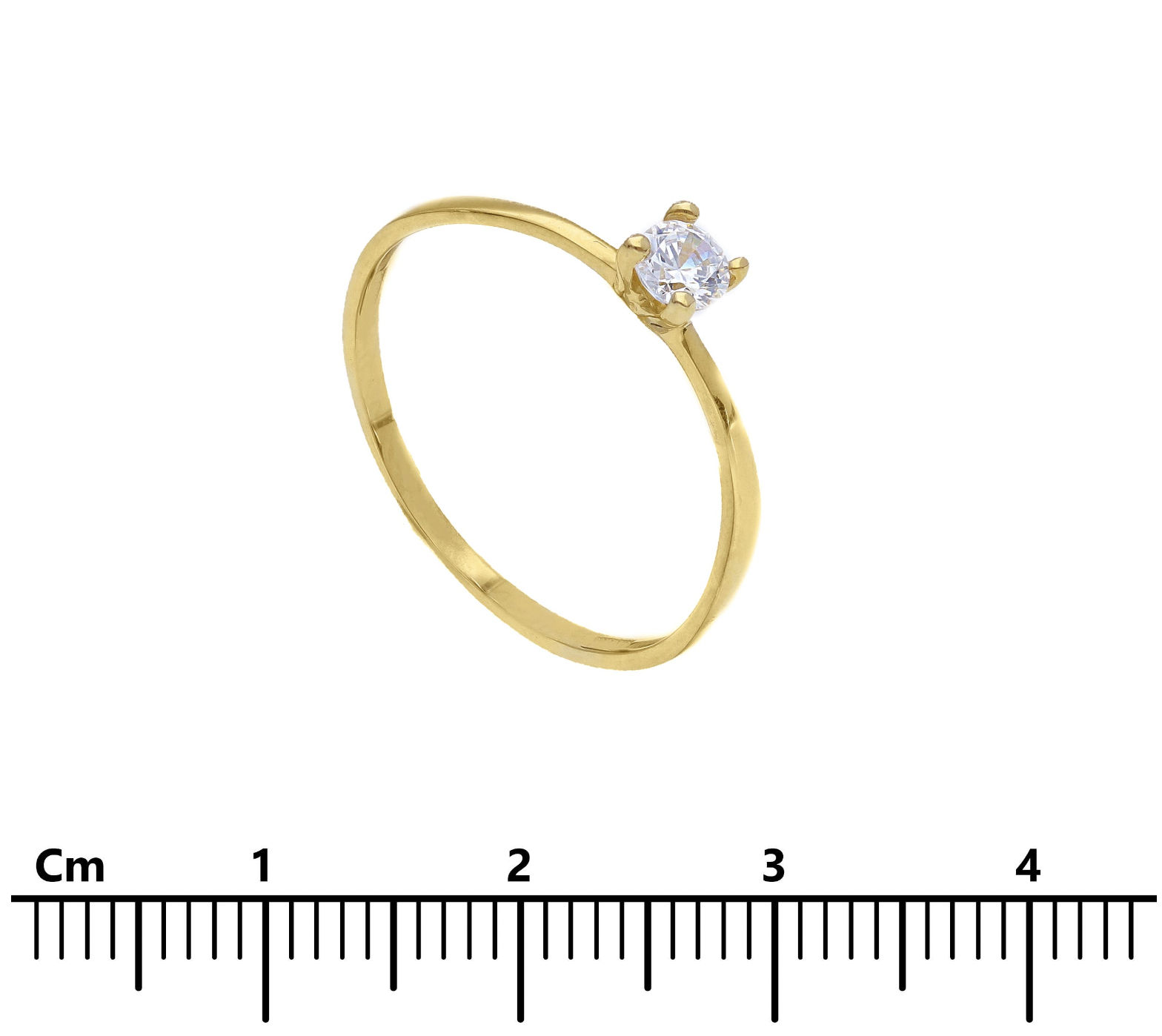 Single stone k14 gold ring with slim module and zirkon on four teeth bezel (S253256)