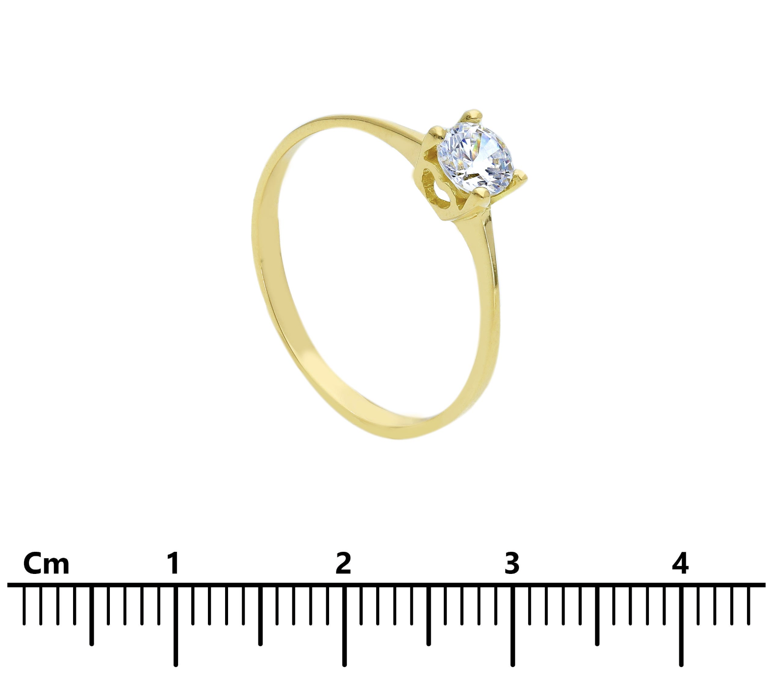 Single stone k14 gold ring on slim module and zirkon on four teeth bezel (code S253261)
