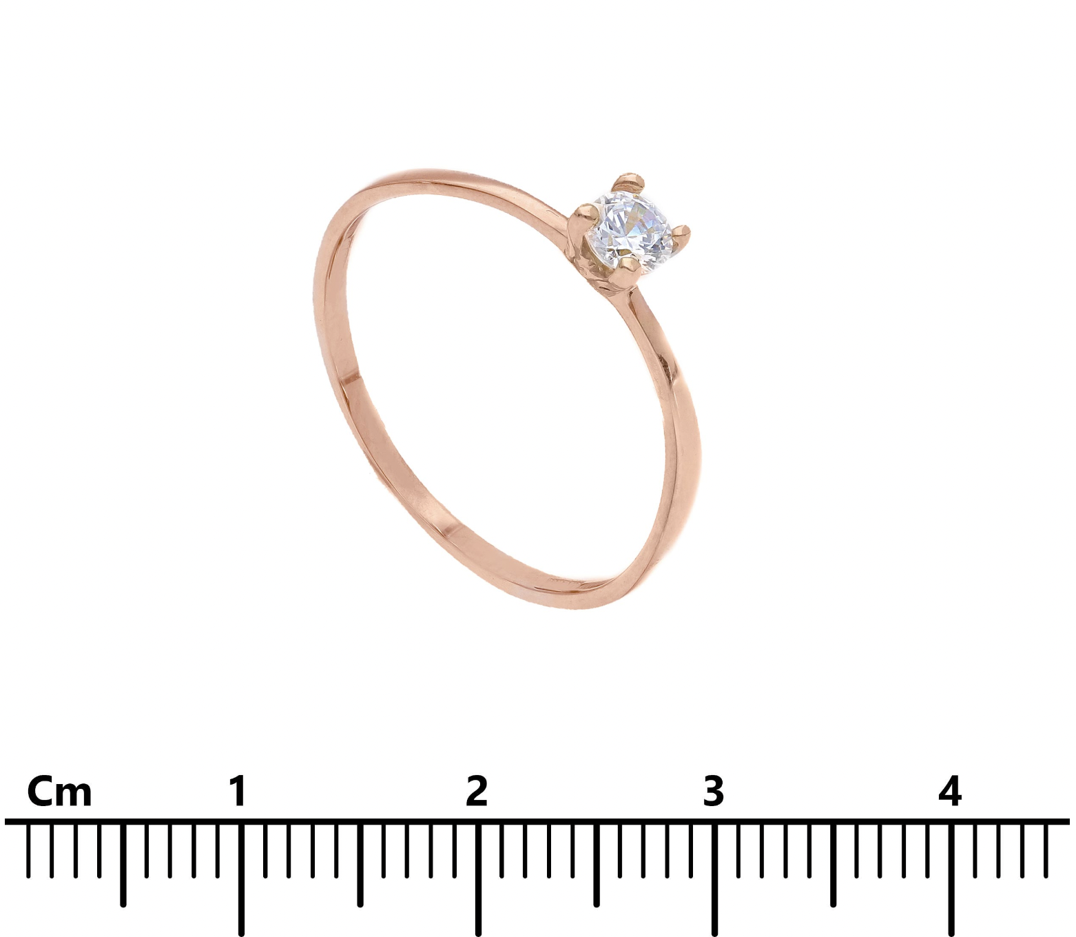 Single stone k14 rose gold ring with zirkon on four teeth bezel (S253267)