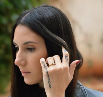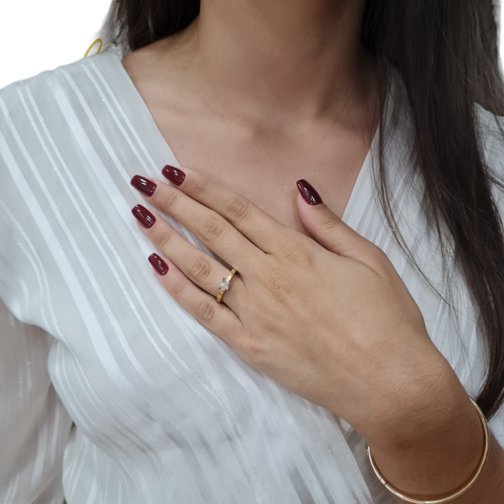 "Pallas" Golden single stone ring k18 with diamond tied on white gold k18 bezel (code P2028)