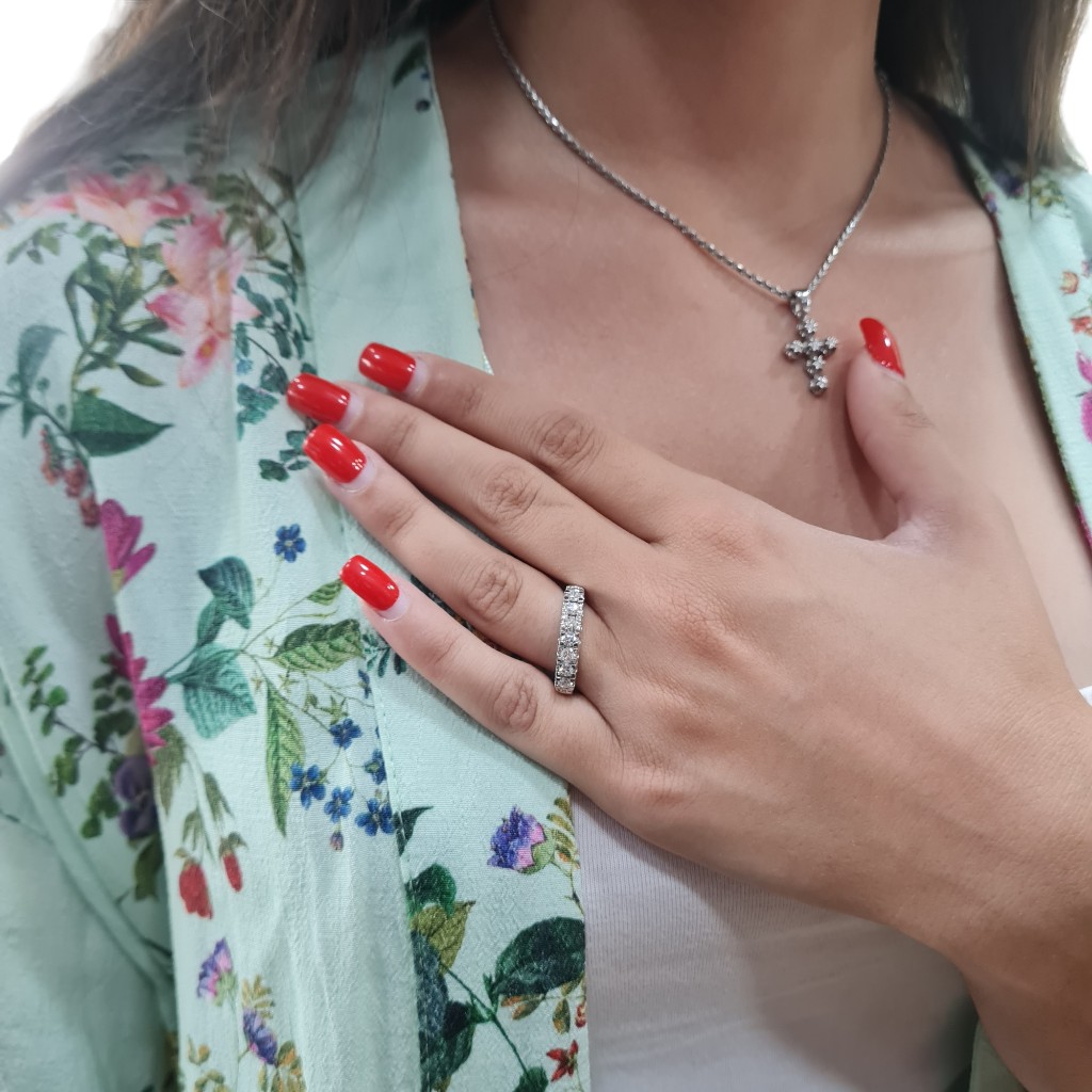White gold eternity ring k18 with 7 diamonds (code T2620)