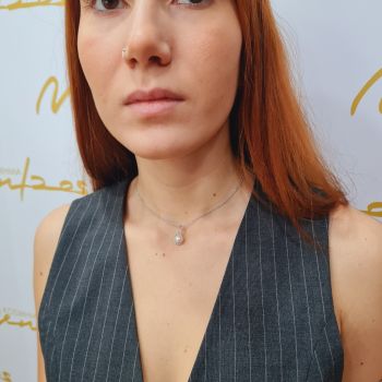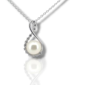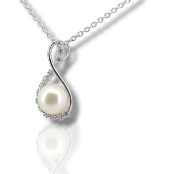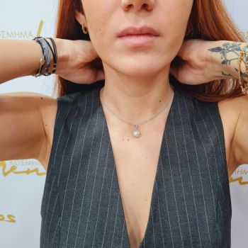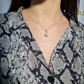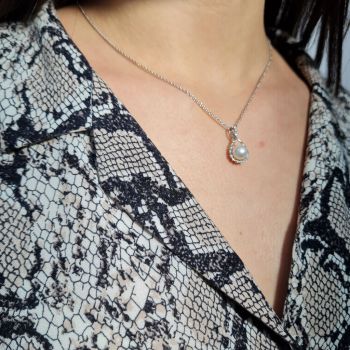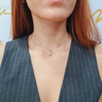 White gold necklace k14 with a pearl and a zircon on top ( code S229407)