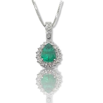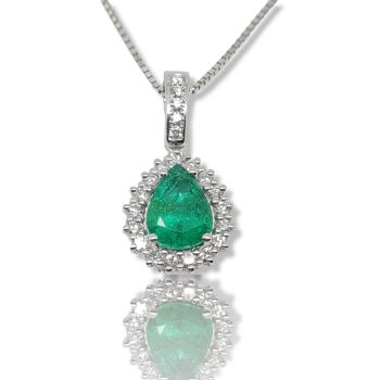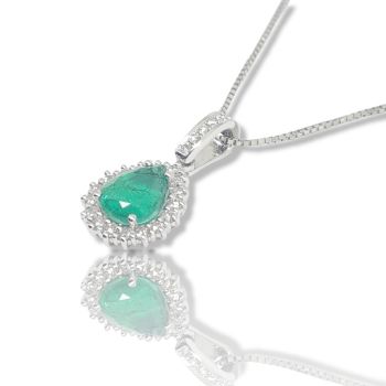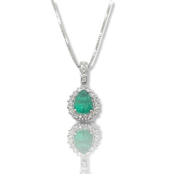 White gold necklace 18k with emerald 1.84ct and white brilliant diamonds 0.53ct VS/F-G. Chain included in price 45cm