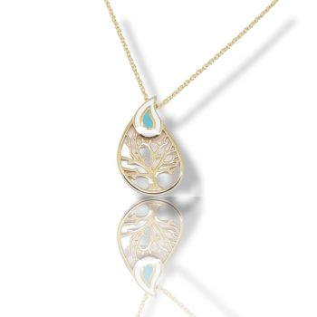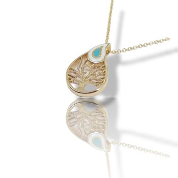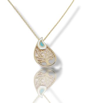 Golden necklace k14 with white & blue enamel (code Μ2470)