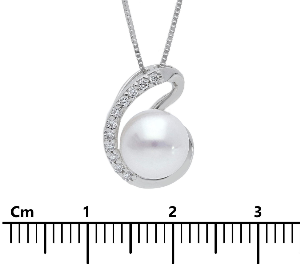 White gold necklace 18k with diamonds 0.090ct SI/G & peal Ø 7.5-8 mm. Chain 18k included in price 45cm
