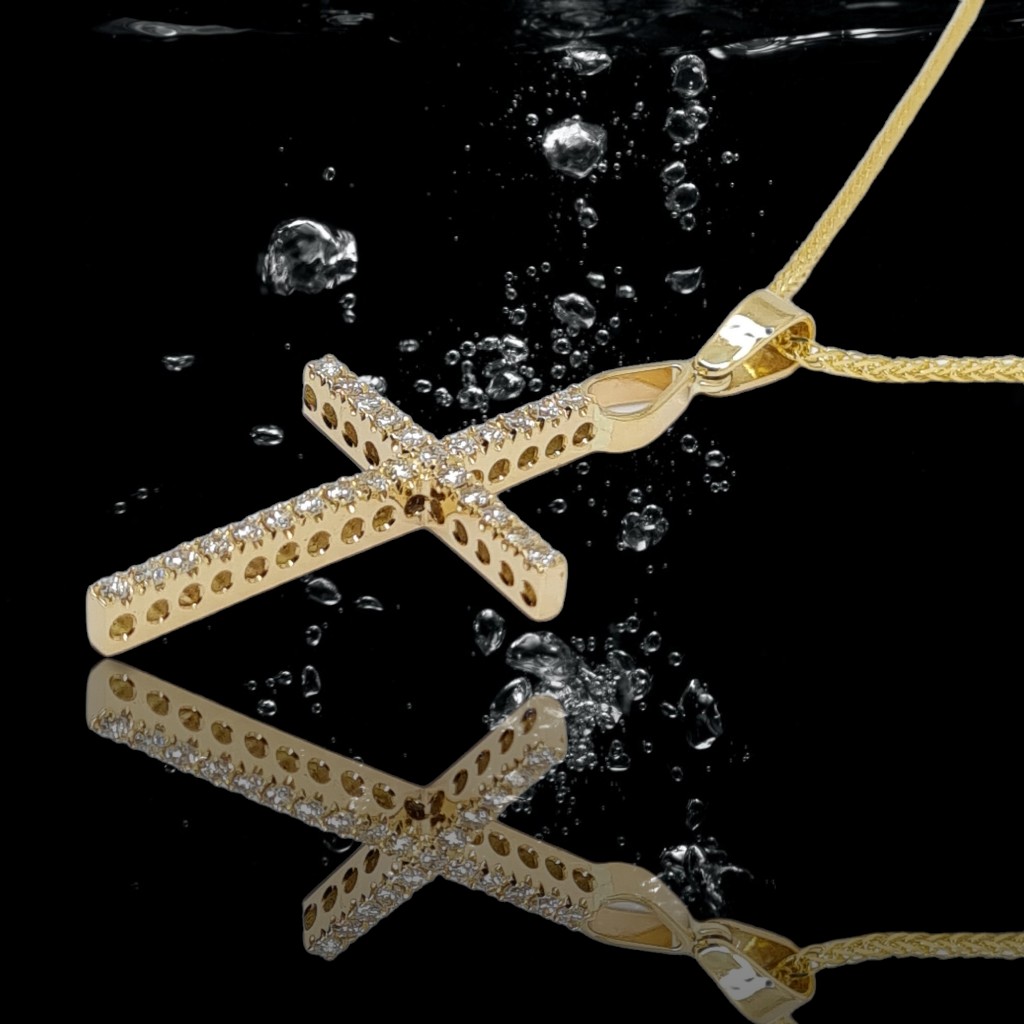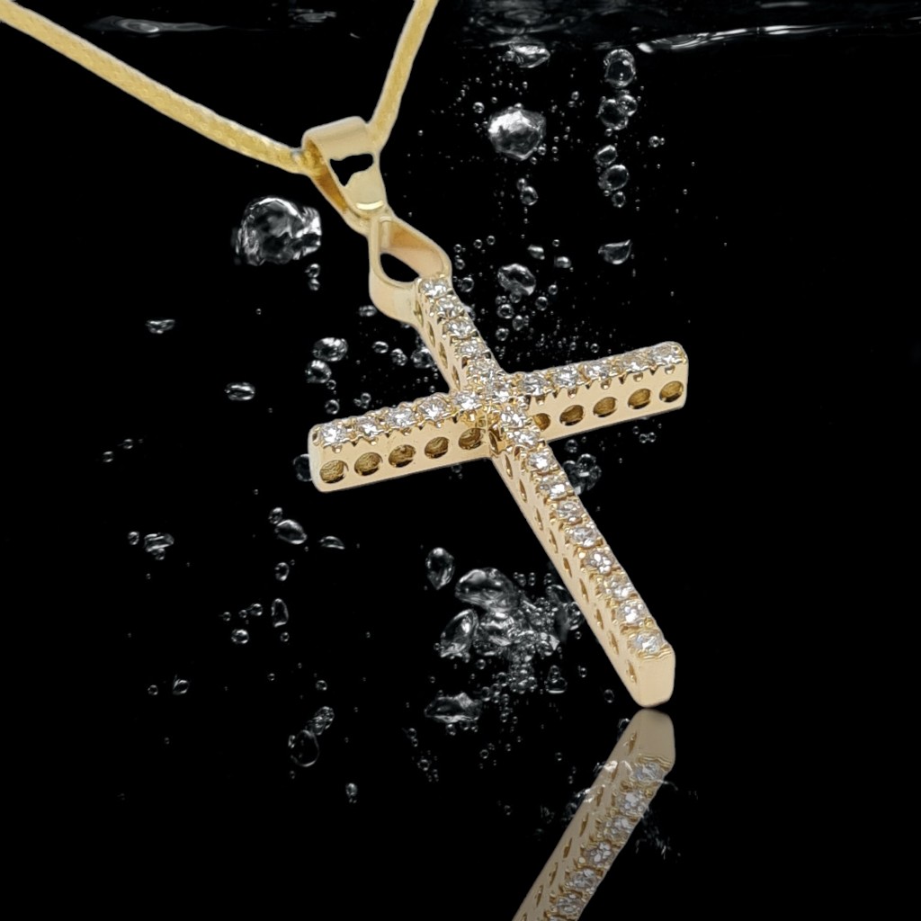 Golden cross (with chain) k18 with diamonds (code H2327)