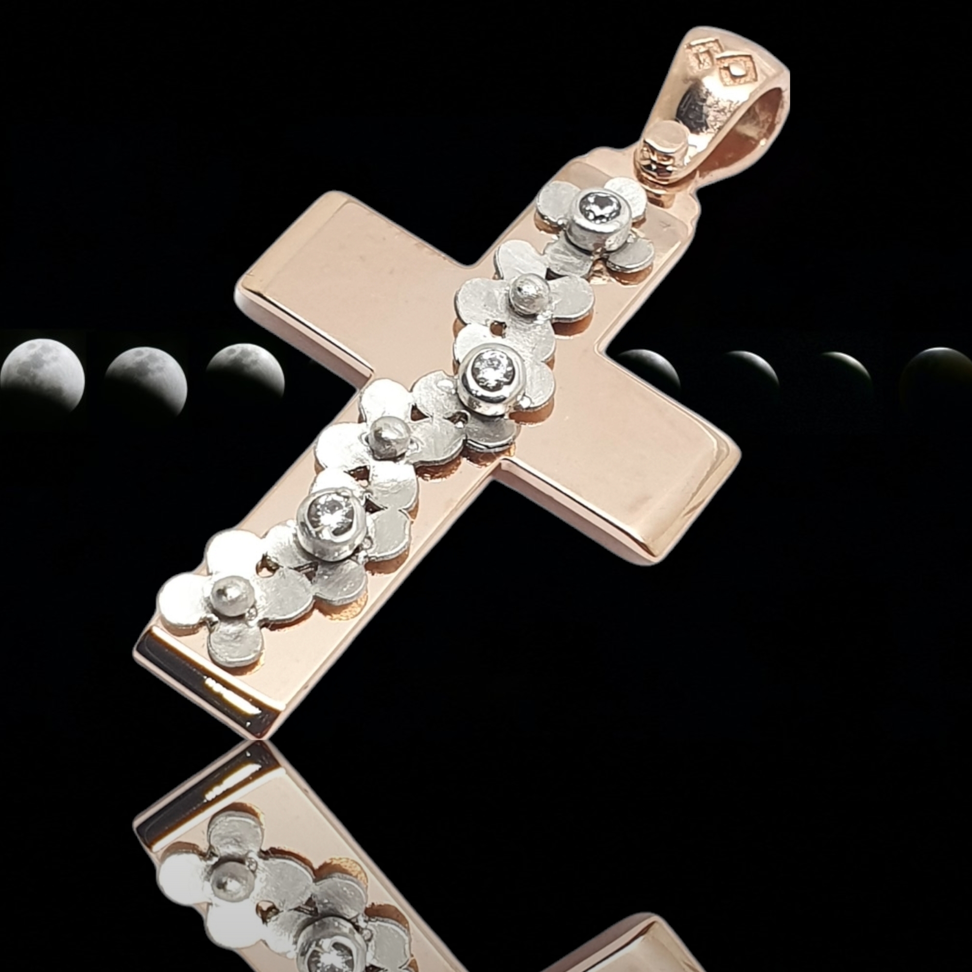 Rose gold cross k14 with white gold flowers (code GP2136)