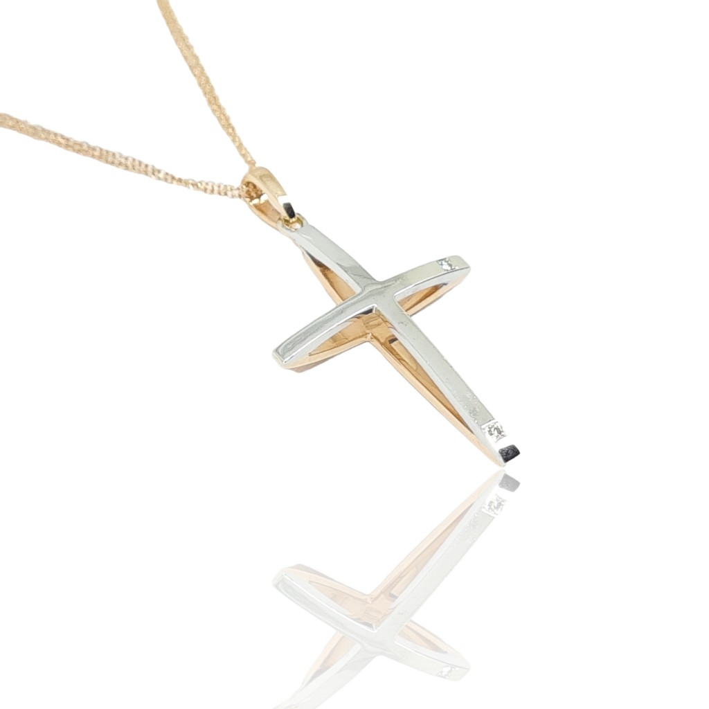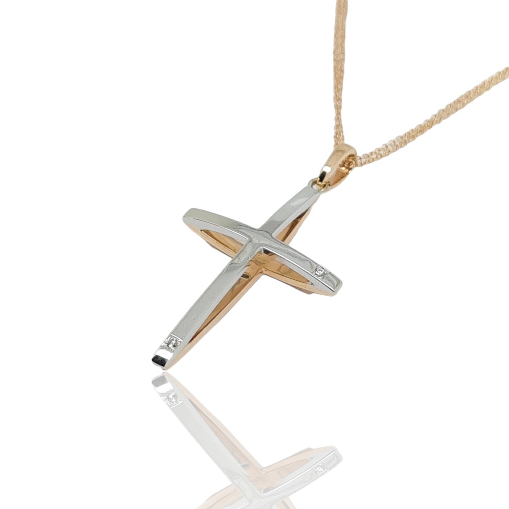 White gold & rose gold double sided cross (with chain) k14 with diamonds (code P1735)