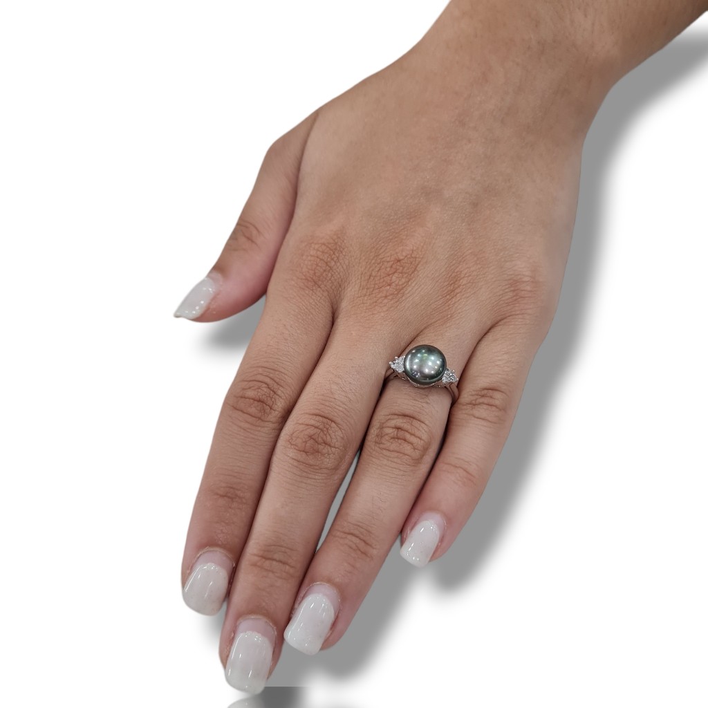 Anello da Donna in argento 925° rodiato con zirconi cubici e Perla