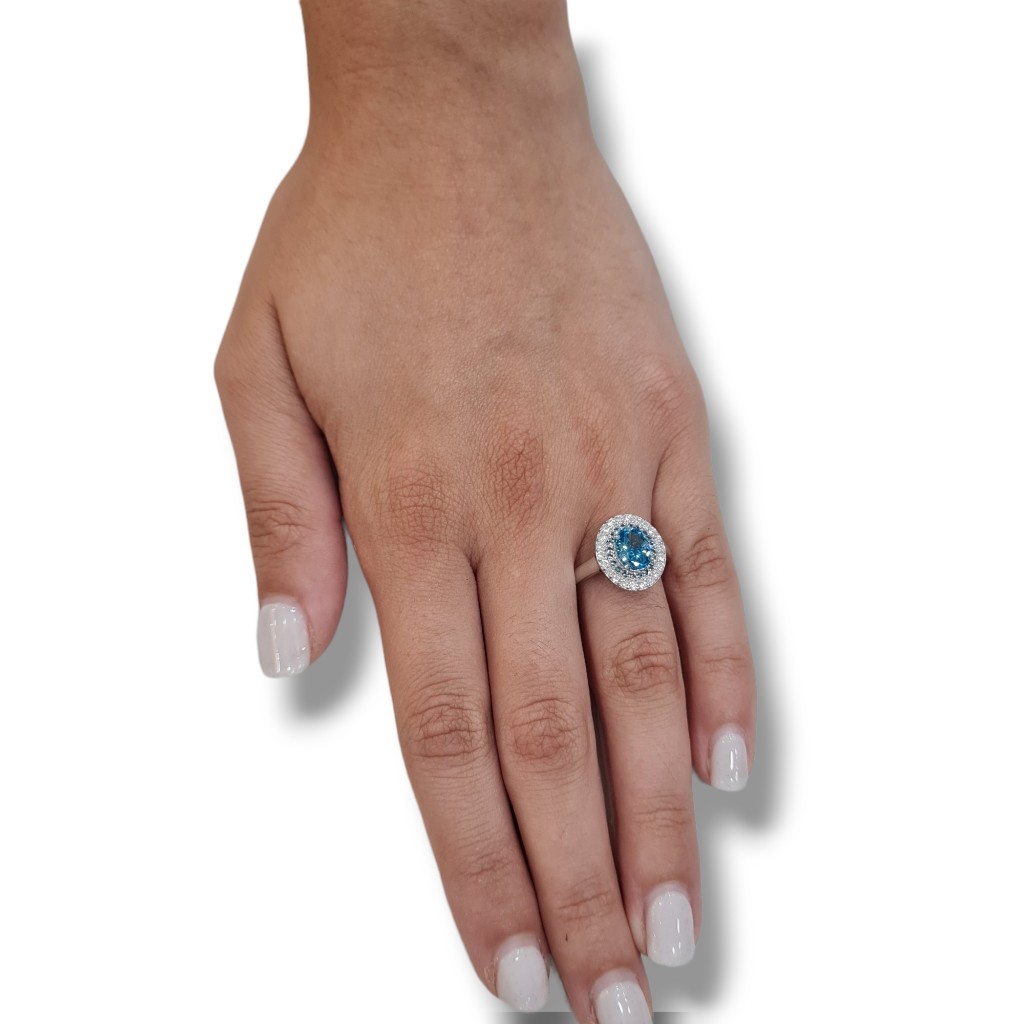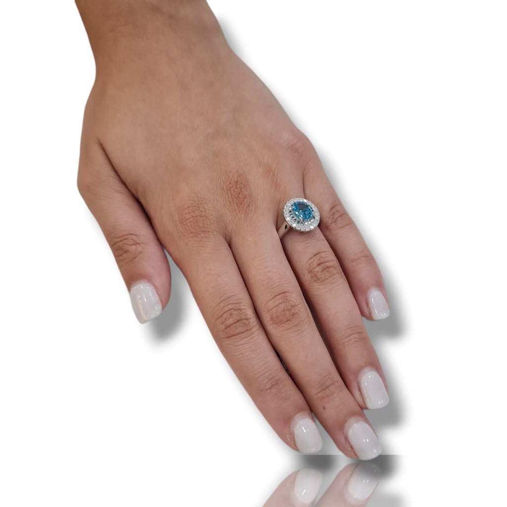 Anello da Donna in argento 925° rodiato con zirconi cubici e topazio blu sintetico 6mm x 8mm