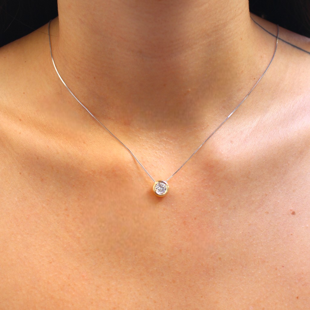 Collana in argento con solitario e castone placcato oro (code FC012598)