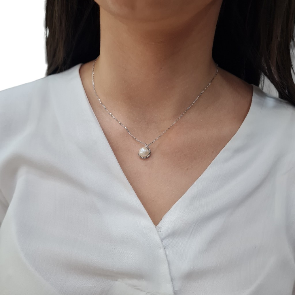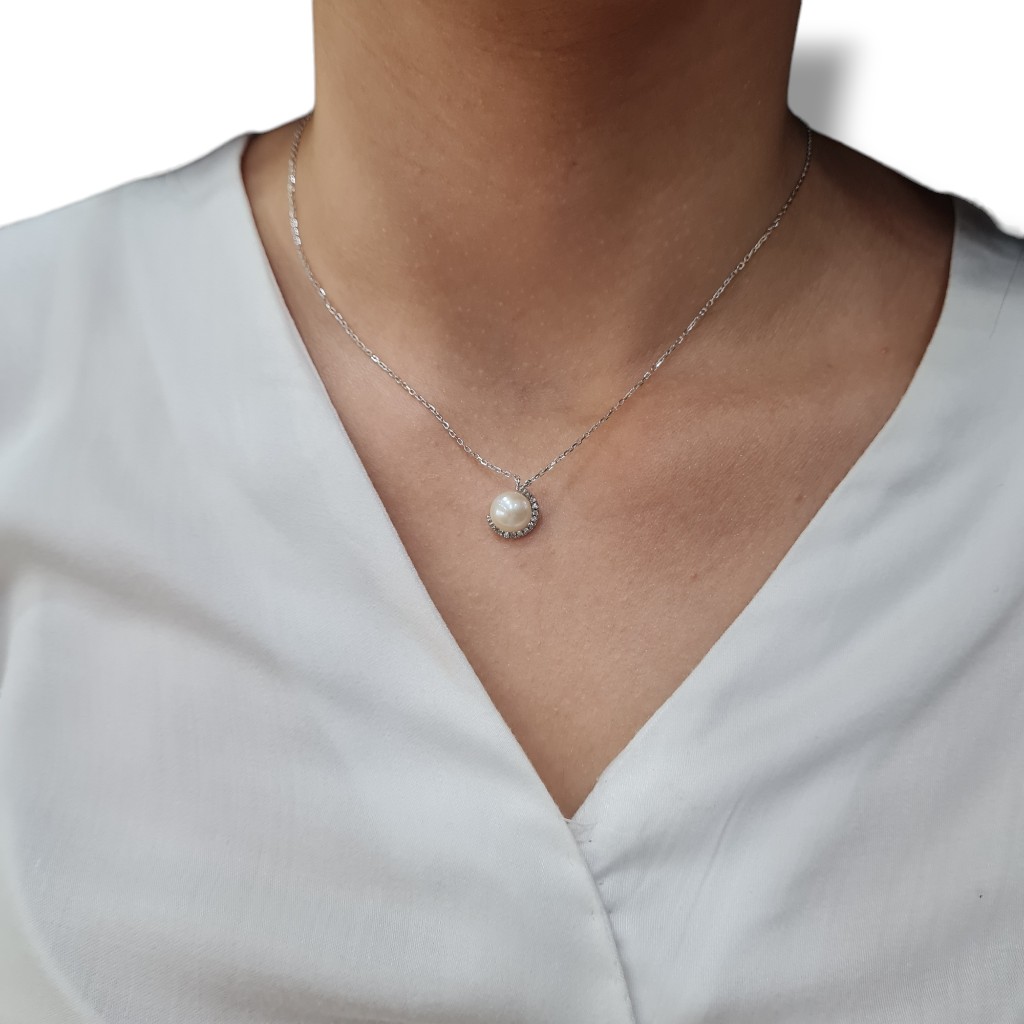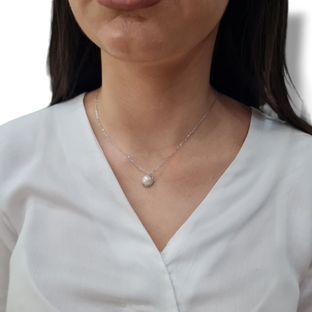 Girocollo in argento 925° rodiato con perla e zirconi cubici (code S231015)