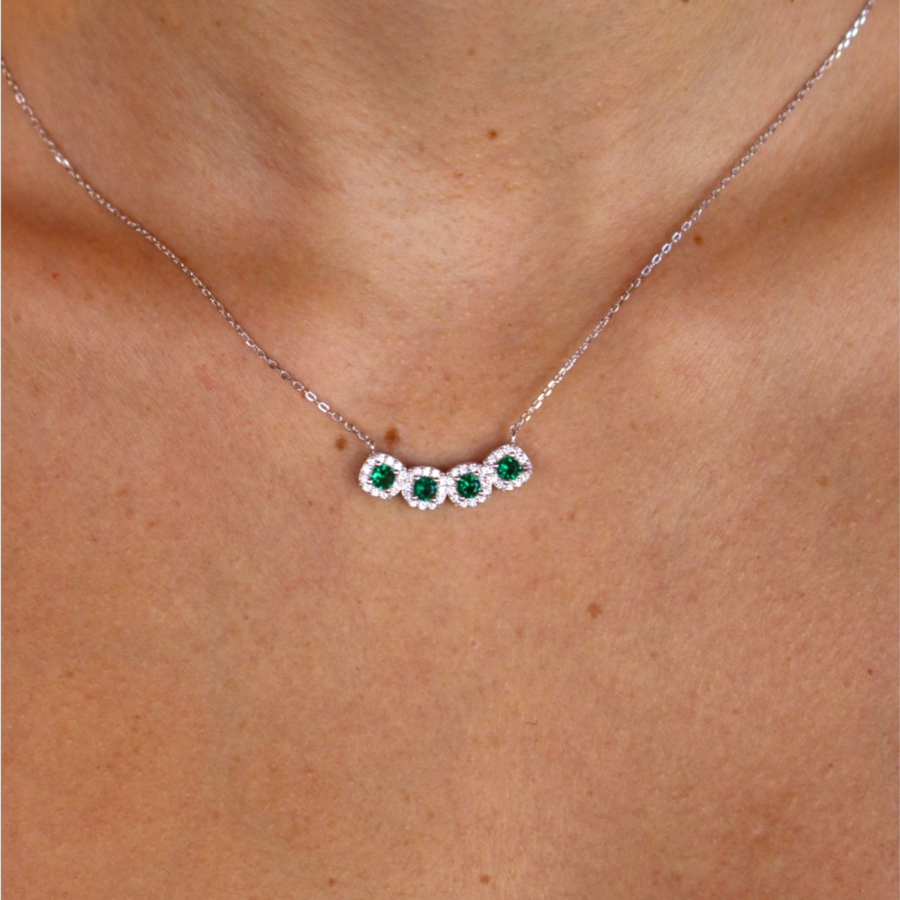 Girocollo in argento 925° rodiato con zirconi cubici con smeraldo sintetico (code FC009986)