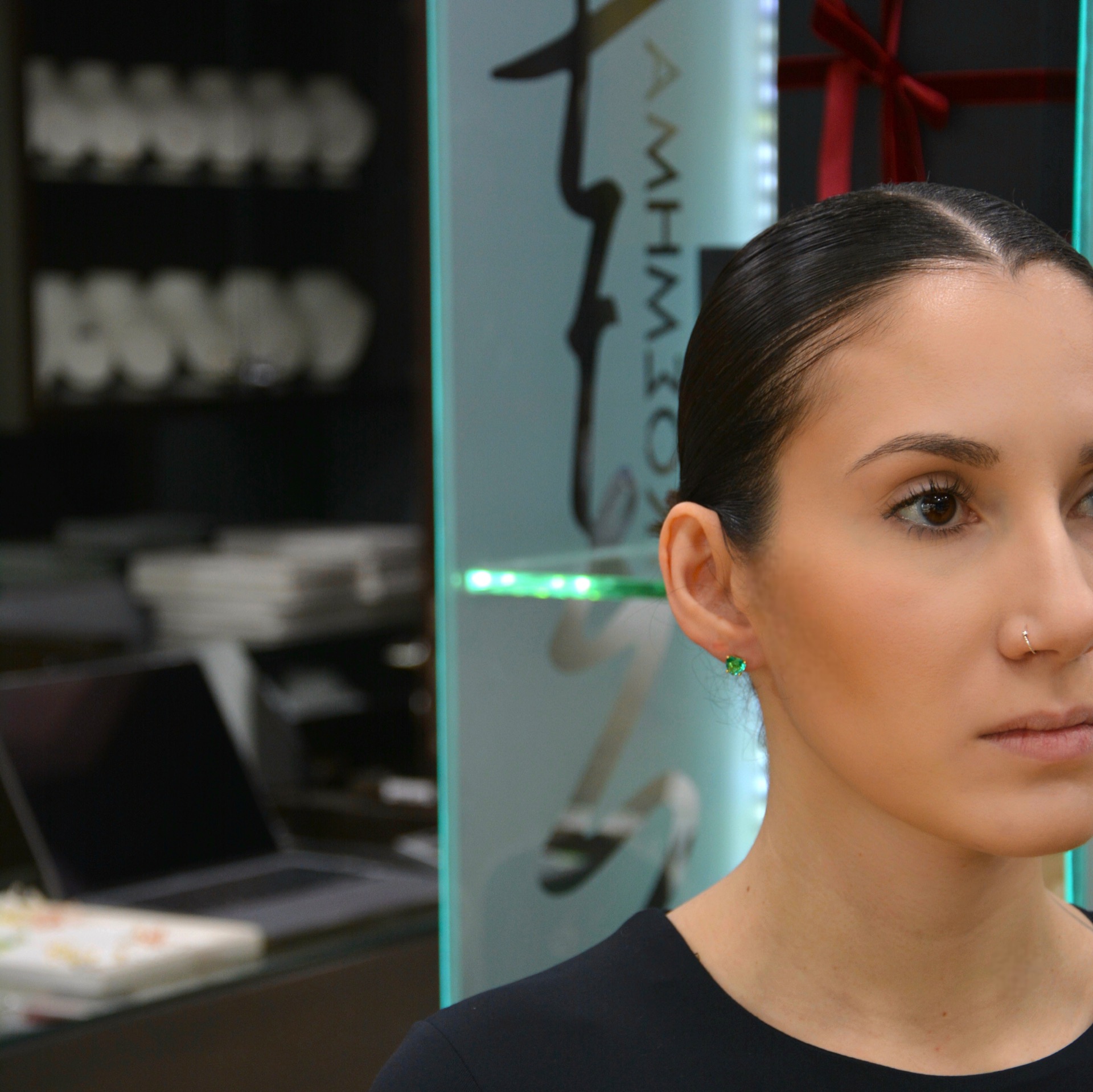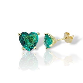 Orecchini in argento placcato oro con smeraldo sintetico 7mm x 7mm a forma di cuore.