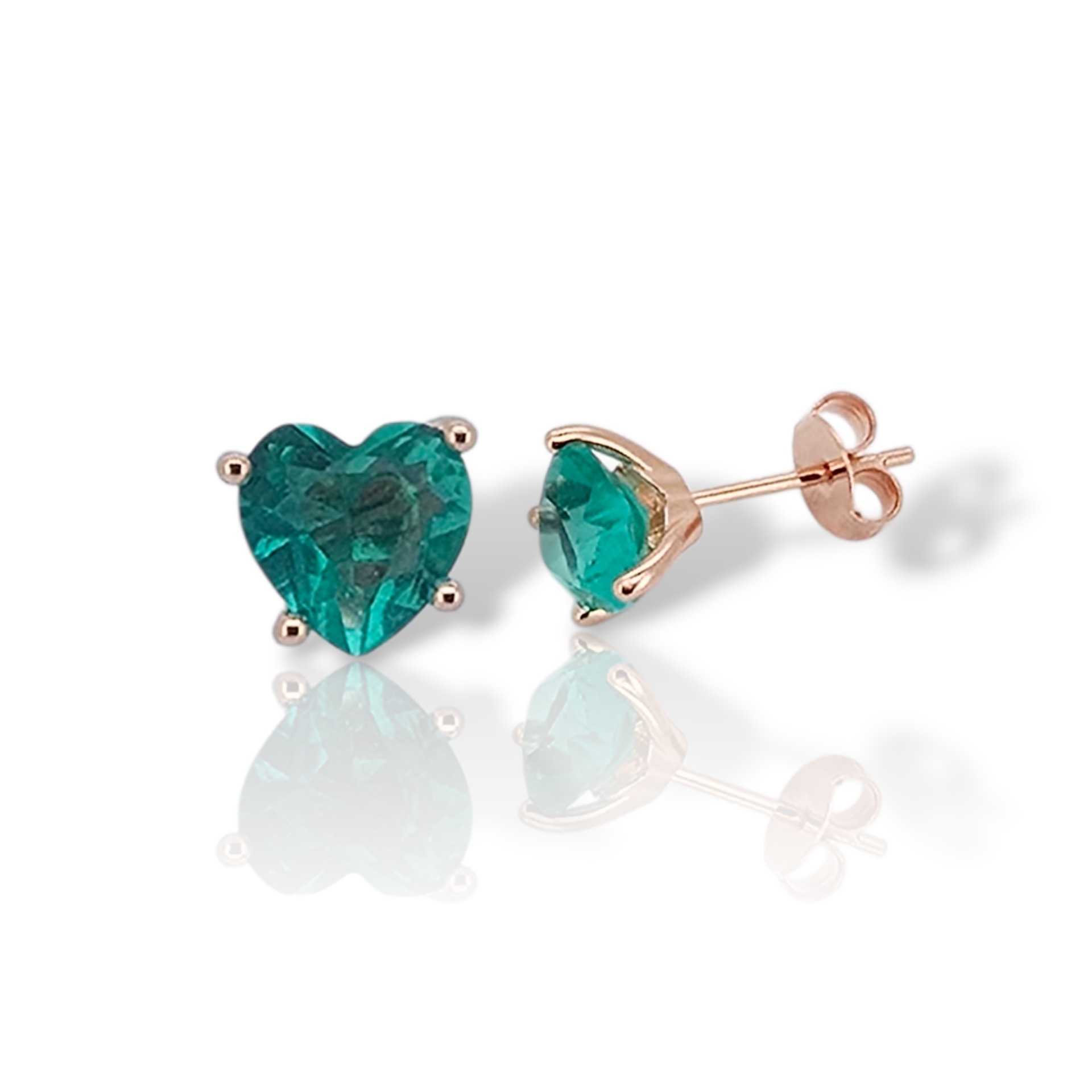Orecchini in argento con smeraldo sintetico 7mm x 7mm a forma di cuore.