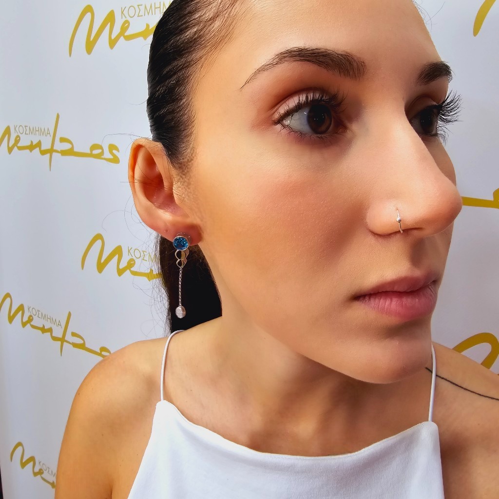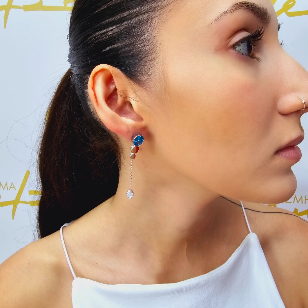 Orecchini in argento 925º placcato platino con topazio azzurro sintetico e zirconi.