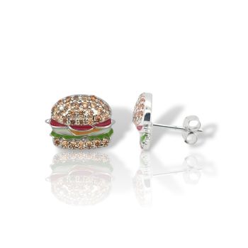 Orecchini a Forma di Hamburger in Argento Sterling Placcato Platino con Smalto e Zirconi (code GEM22919)