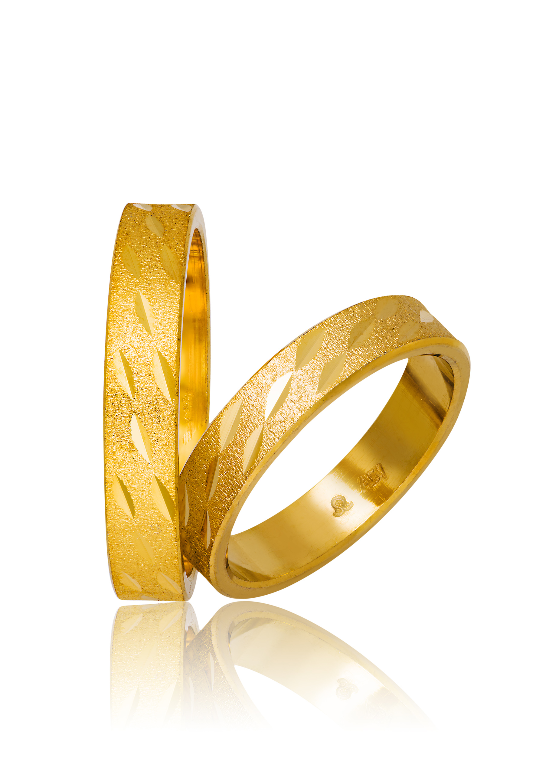 Fedi nuziali in oro giallo. È possibile realizzare lo stesso design in oro bianco o rosa. Il prezzo è per coppia. I grammi sono approssimativi e possono variare a seconda dei carati e dei numeri.