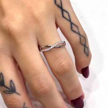 Anello in oro bianco k9 con zirconi bianchi (code S275180)
