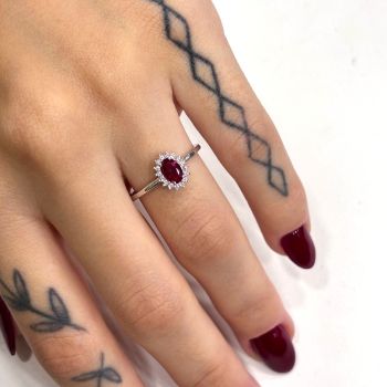 Anello a Rosetta in Oro Bianco 9K con Rubino Sintetico (code S287558)