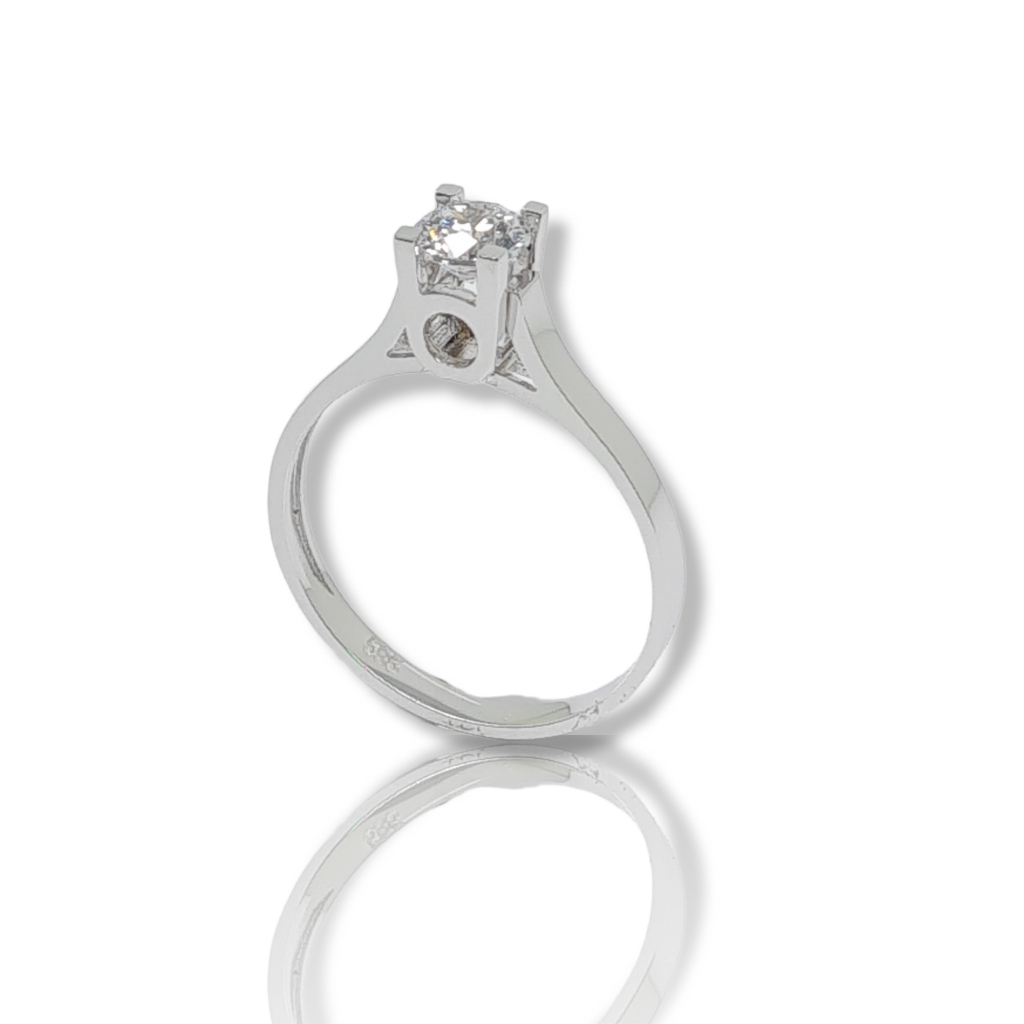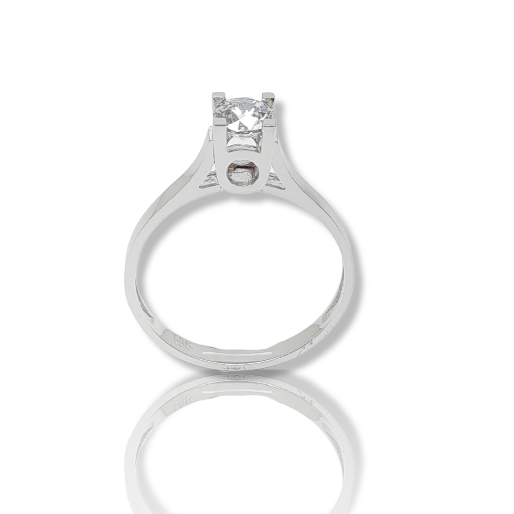 Anello solitario in oro bianco k14 con zirconia cubica (code M2438)
