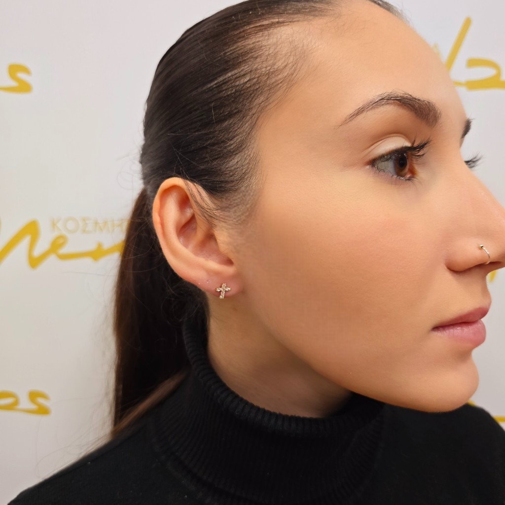 Orecchini Croce in oro giallo k14 con zirconi cubici (code S210360)