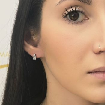 Orecchini lobo in oro Bianco k9 con topazio blu sintetici e zirconi cubici (code S287578)