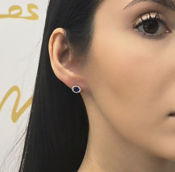 Orecchini lobo in oro Bianco k9 con zaffiri sintetici e zirconi cubici (code S253183)