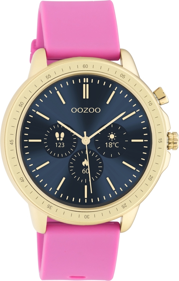 L'ora e la data vengono impostate automaticamente non appena viene stabilita la connessione con il telefono cellulare • Lo smartwatch OOZOO include le seguenti funzioni: contacalorie, frequenza cardiaca, pressione sanguigna, ossigeno nel sangue Modalità sport (camminata, corsa, ciclismo, ecc.) Registrazione del sonno Messaggi meteo (WhatsApp, SMS ecc.) Controlla la musica, scatta foto Cronometro