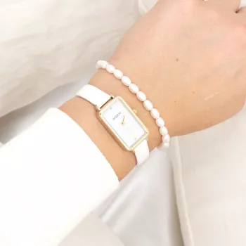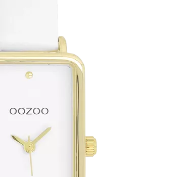 Gold coloured OOZOO watch with white leather strap - C11530