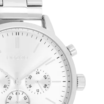 The classic look stays key in this trendy series and therefore, this round OOZOO vintage design with a playful wink is the season must-have! This ladies watch is the perfect combination of fashion and comfort with its 32 mm silver coloured metal watch case and blanc dial. The silver coloured chunky chain bracelet makes this watch a trendy accessory, which you can wear every day. The dial has silver coloured stripes digits and matching hands. The C20355 adds the sparkle to your outfit. The mineral glass lays in a 6,9 mm slim metal watch case with IP-plating. This design has a stainless steel backplate and is nickel safe. This watch has a 2ATM Japanese movement and is covered by a 2 year warranty (see section 3 of our Refund, shipping & warranty policy).