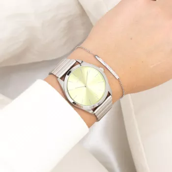 Distinguiti con questo splendido design unisex della collezione trendy di orologi OOZOO. Il modello C11515 è dotato di un bracciale in acciaio inossidabile argento lucido e di una cassa in metallo color argento da 40 mm e quadrante verde lime.