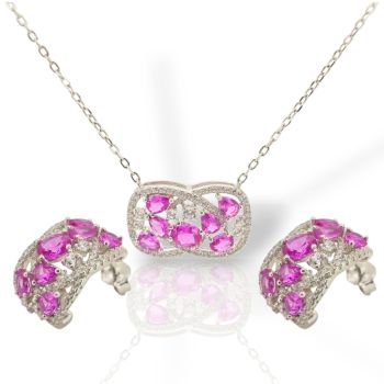Ασημένιο Επιπλατινωμένο Σετ Κολιέ και Σκουλαρίκια με Ζιργκόν σε Ροζ και Λευκό (M2831)