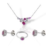 Ασημένιο Επιπλατινωμένο Σετ Κολιέ και Σκουλαρίκια με Ζιργκόν σε Ροζ και Λευκό (Μ2837)