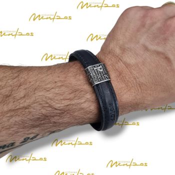 Δερμάτινο βραχιόλι με κούμπωμα απο ασήμι 925°