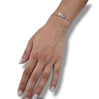 Ασημένιο, επιπλατινωμένο βραχιόλι με πατουσάκι και καρδούλα
