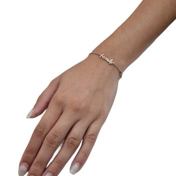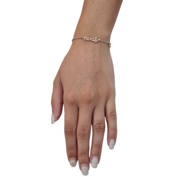 Ασημένιο, επιπλατινωμένο βραχιόλι family με επιχρυσωμένες λεπτομέριες με ροζ χρυσό