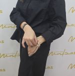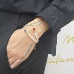 Κομψό επιχρυσωμένο βραχιόλι διακοσμημένο με πέρλες και λαμπερά ζιργκόν. Ο σταυρός τύπου ροζάριο προσθέτει μια διακριτική πινελιά πίστης και στυλ. Ιδανικό για να φορεθεί μόνο του ή σε συνδυασμό με άλλα κοσμήματα για ένα μοντέρνο, εκλεπτυσμένο look.