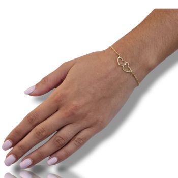 Βραχιόλι ασημένιο, επιχρυσωμένο με κίτρινο χρυσό, με δυο καρδούλες