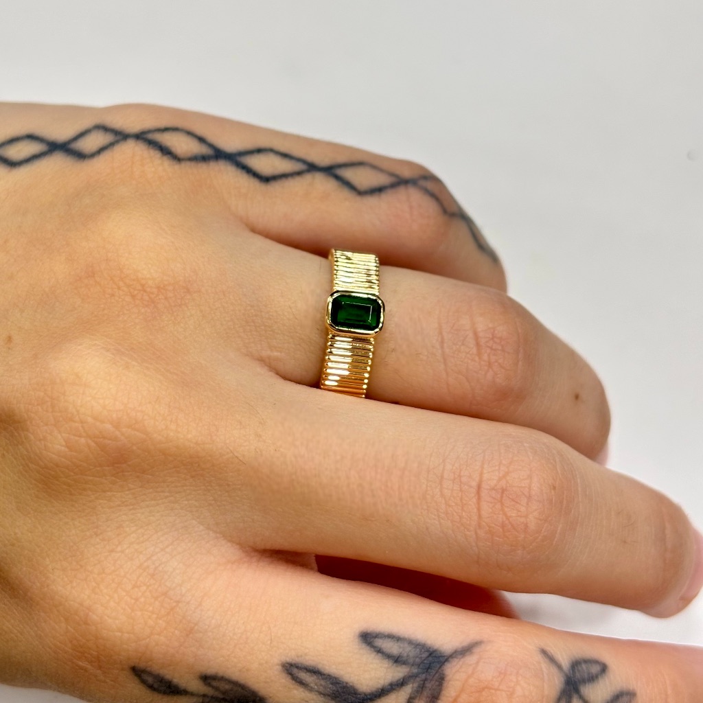 Δαχτυλίδι απο επιχρυσωμένο ασήμι 925º με συνθετικό σμαράγδι.