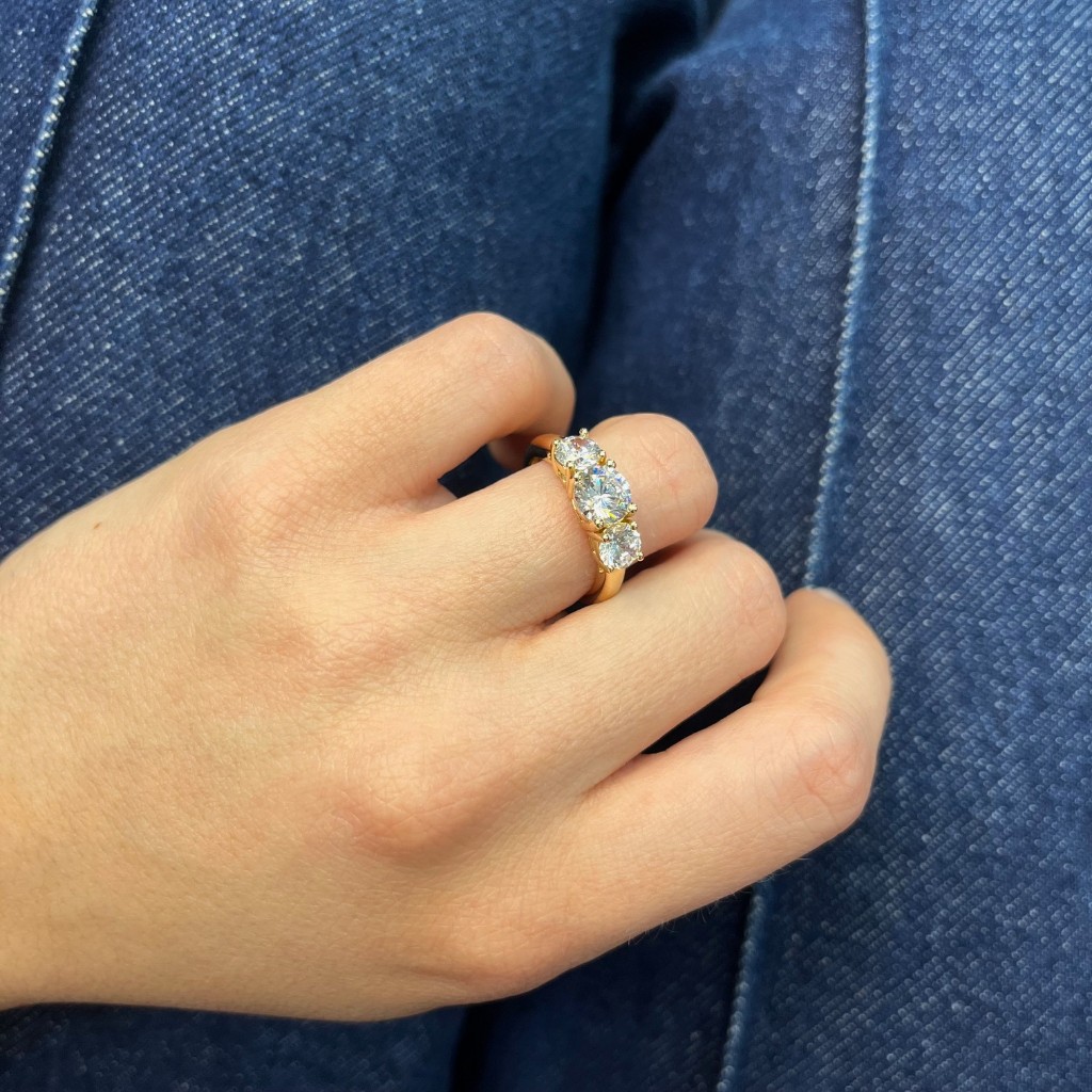 Δαχτυλίδι απο επιχρυσωμένο ασήμι 925º με τριλογία απο μεγάλα και μικρά λευκά ζιργκόν.