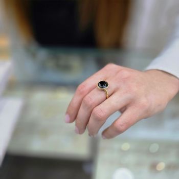 Δαχτυλίδι απο επιχρυσωμένο ασήμι 925º με μαύρη κεντρική συνθετική πέτρα