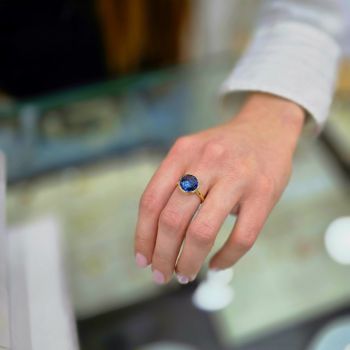 Δαχτυλίδι απο επιχρυσωμένο ασήμι 925º με συνθετικό ζαφείρι.