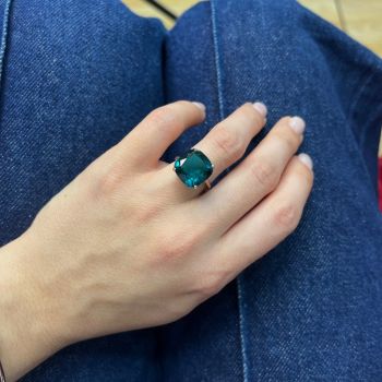 Δαχτυλίδι απο επιχρυσωμένο ασήμι ροζ χρυσό 925º με συνθετικό σμαράγδι.