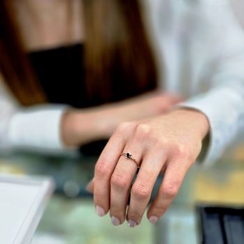 Δαχτυλίδι απο επιχρυσωμένο ασήμι (ροζ χρύσο) 925º με συνθετική μαύρη πέτρα σε σχήμα καρδιά.