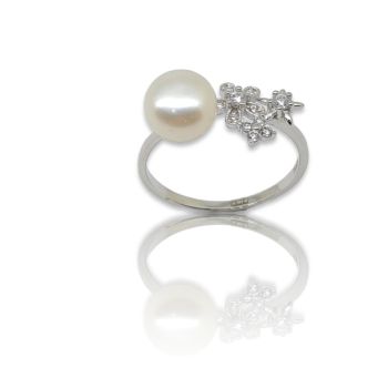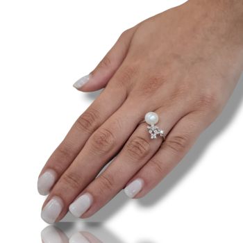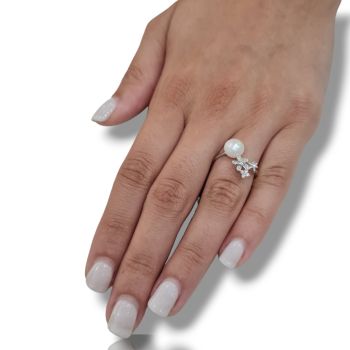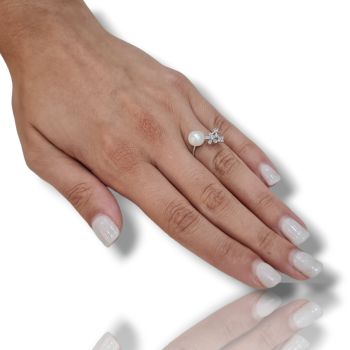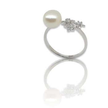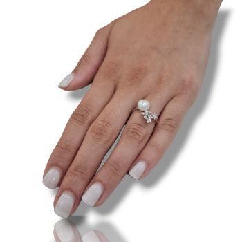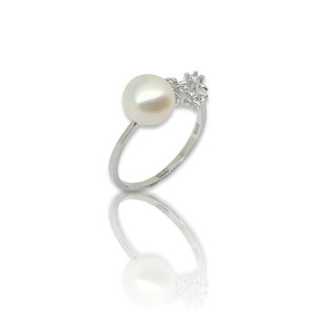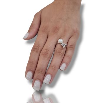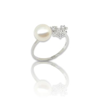 Δαχτυλίδι απο επιπλατινωμένο ασήμι 925º με λευκά ζιργκόν και μαργαριτάρι Ø 8mm